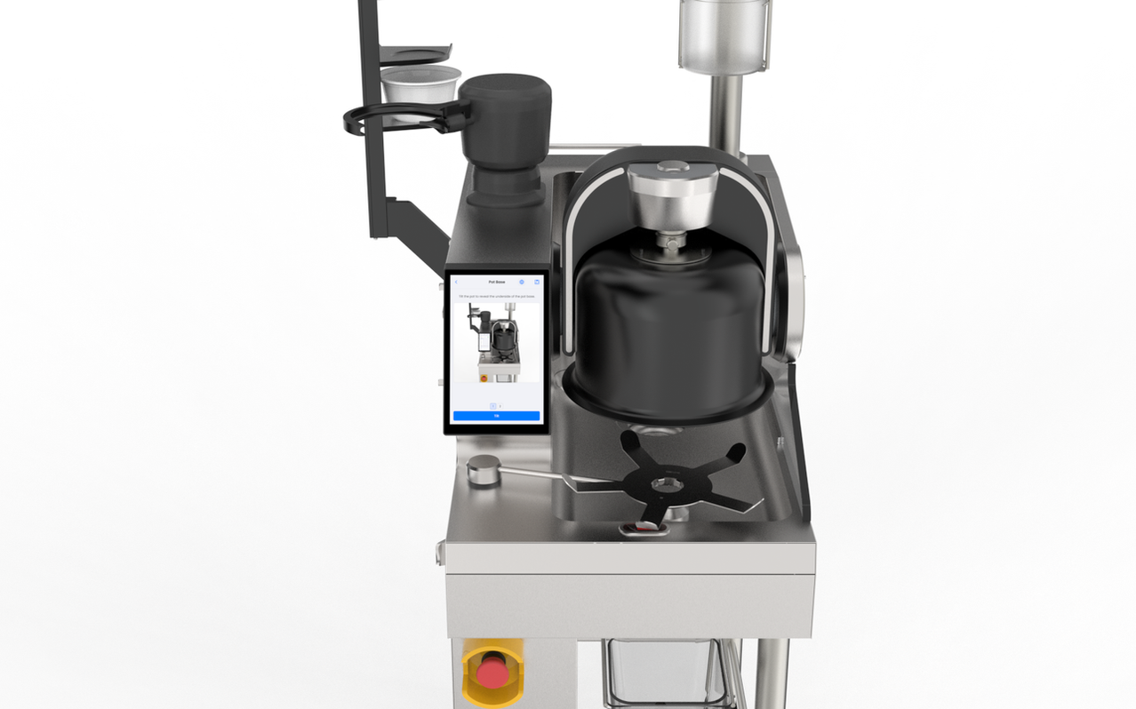 Once the user selects "Change Cooking Pot" a set of animations and images were prepared to show what to do with the machine, as well as what tools were necessary to change the pot. When the pot has been removed and replaced with a new pot, the user can toggle between "Pot A" and "Pot B" depending on the type installed. Alternatively, the user can select "Pot Selection" to change the pot without going through the changing process, to accommodate mistakes.